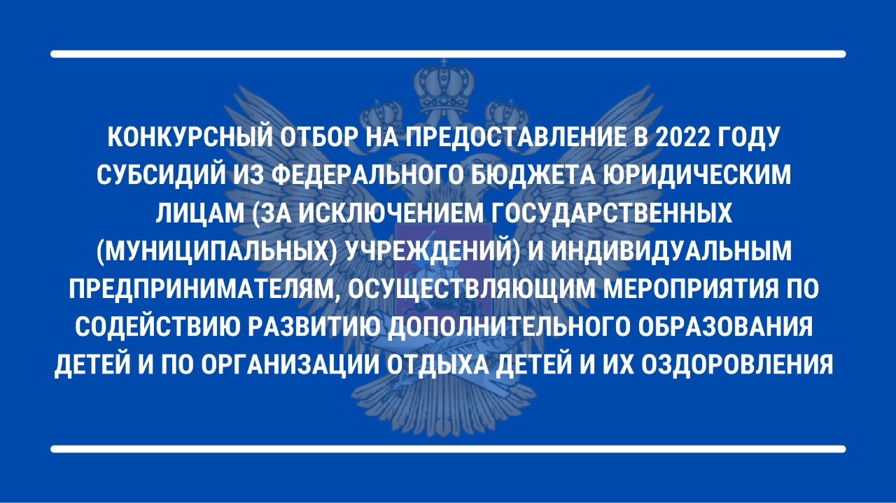 Субсидия из федерального бюджета юридическим лицам (за исключением государственных (муниципальных) учреждений) и индивидуальным предпринимателям, осуществляющим мероприятия по содействию развитию дополнительного образования детей и по организации отдыха детей и их оздоровления