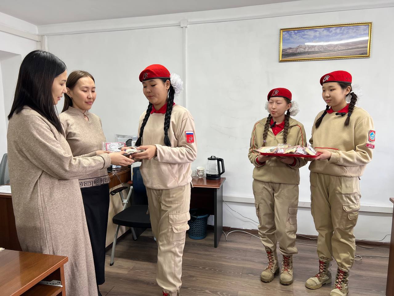 Сегодня юнармейцы школ города Кызыла посетили Министерство образования Республики Тыва и вручили символ акции «Блокадный хлеб» — 125 граммов хлеба, суточную норму жителей блокадного Ленинграда.