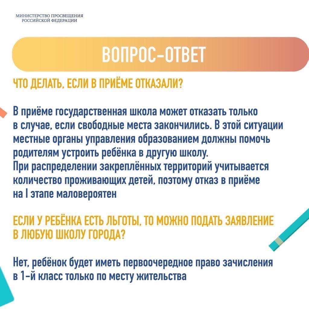 Министерство просвещения Российской Федерации выпустило полезную инфографику по приему на обучение в 1 класс