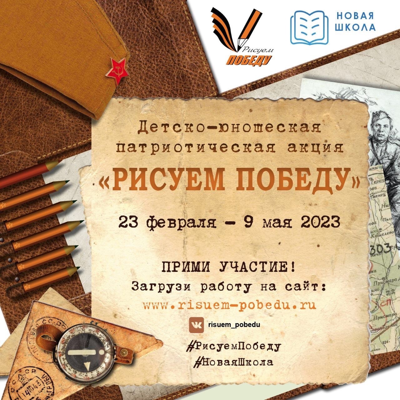 Работы можно загрузить в дистанционном формате через сайт акции www.risuem-pobedu.ru с 23 февраля до 1 мая 2023 года. Итоги акции «Рисуем Победу-2023» подведут в День Победы.С каждым годом интерес к акции «Рисуем Победу» растет. По итогам 2022 года в конкурсной программе приняло участие более 750 тысяч человек! Дети России и их сверстники из государств СНГ, «вооружившись» кисточками, красками и карандашами, заявили всему миру, что они помнят своих Героев, чётко знают, кто победил во Второй мировой войне, кто спас мир от фашизма. Многие работы были посвящены героям нашего времени – бойцам армии России, вставшим на защиту суверенитета страны.